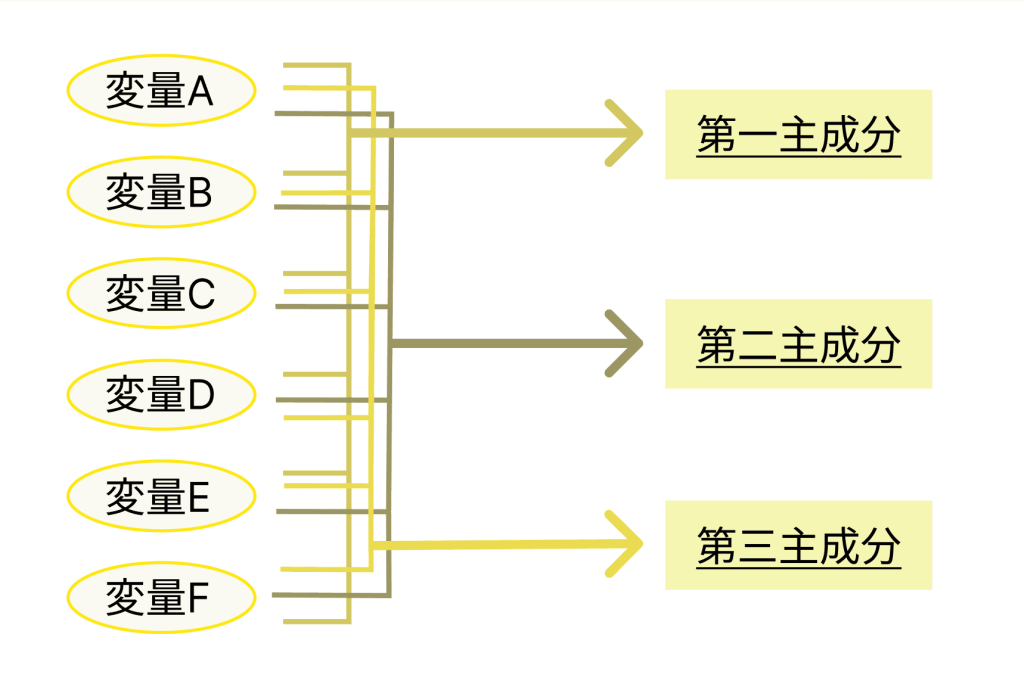 主成分分析は、テキストデータの分析を簡便化するために、多数の変数を3つ程度の合成変数(主成分)に置き換える手法です。出現頻度や関連性が低い単語を除外して主要な要素のみを抽出するため、データを解釈しやすくなります。