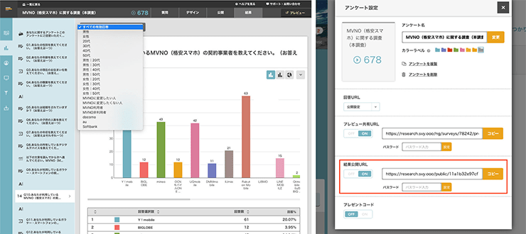 また、集計結果の公開用URLを発行し、企業様と共有できるのも嬉しいポイント。「現在の回答数がどれくらいで、どんなコメントが来ているか」などの進捗状況は、通常は管理者しか確認できません。でも、CREATIVE SURVEYは公開URLを発行すれば、外部の人にも回答状況を随時共有できるんです。