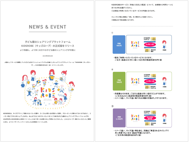 例えばTシャツなら「襟はUネックかVネックか」「何色がいいか」「どんな機能がほしいか」などをアンケートでお聞きし、最も多い回答を元に商品化します。MDアンケートによる商品化はすでに何度も実施していて、studio CLIPの定番施策になっていますね。 また新しいビジネスモデルを構築する「アダストリア・イノベーションラボ」では、子ども服のシェアリングプラットフォームKIDSROBE(キッズローブ)など、リリースに向けてテストマーケティングに参加してくれた人たちの声を集めるためのアンケートでも活用しています。