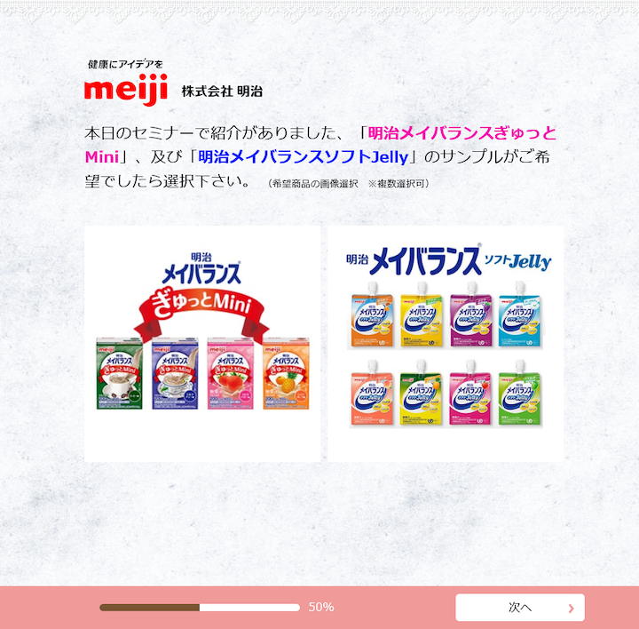 三崎:BtoB事業を展開しているメディカル1Gでは、お客様との接点を構築するためCREATIVE SURVEYを活用しています。私たちの仕事は製薬メーカーの業務内容に近く、管理栄養士や医師・看護師・薬剤師・介護スタッフの皆様などをメインにアプローチしています。アプローチ方法としては、お客様の元へ直接訪問する訪問営業が中心となりますが、年に数回行われる専門の学術学会や自社で開催するセミナーや勉強会等での情報提供にも注力をしております。