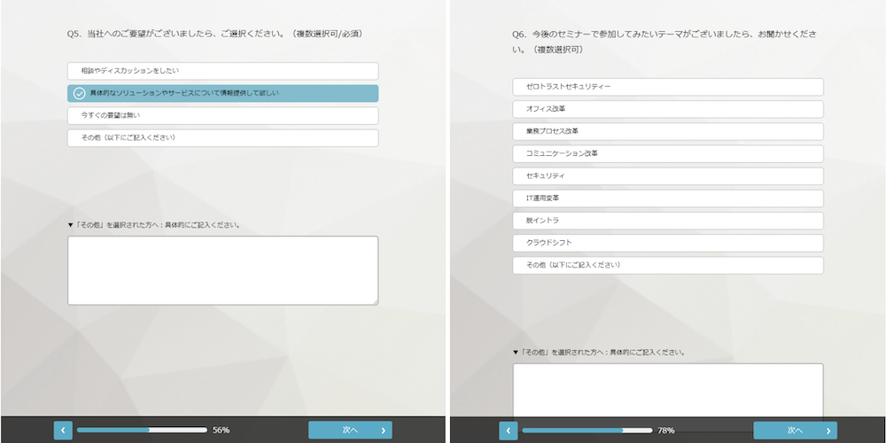 コロナ禍以前のオフラインの展示会では営業担当がお客様をアテンドしていたので、会場を回りながら課題やニーズをヒアリングできたのですが、オンラインではそれができません。そのため、アンケートは商談機会を創出する上でとても重要なシステムになっています。