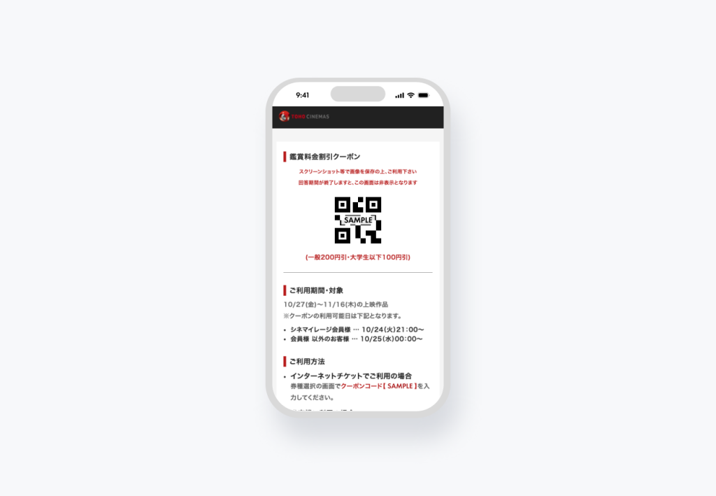 お客様は次回購入時にQRコードを現地の機械で読み込むか、インターネット予約の際にクーポンコードを入力することで割引を受けることができます。
