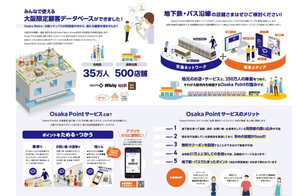 また、弊社ではOsaka Metroグループが運行する鉄道やバス、エキナカの提携店舗などを利用すると貯まるポイントサービス「Osaka Point」を運営しています。「Osaka Point」は35万人以上の会員様と、500店舗以上のポイント提携店を持つサービスとなっており、その提携店さまのマーケティング支援にもアンケート調査が役立っています。