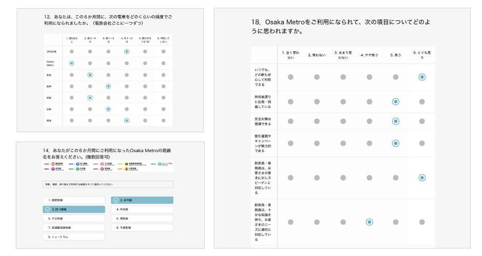 回答による分岐設定でより沿線、利用駅など利用者の実態に合わせた詳細な調査を実施。