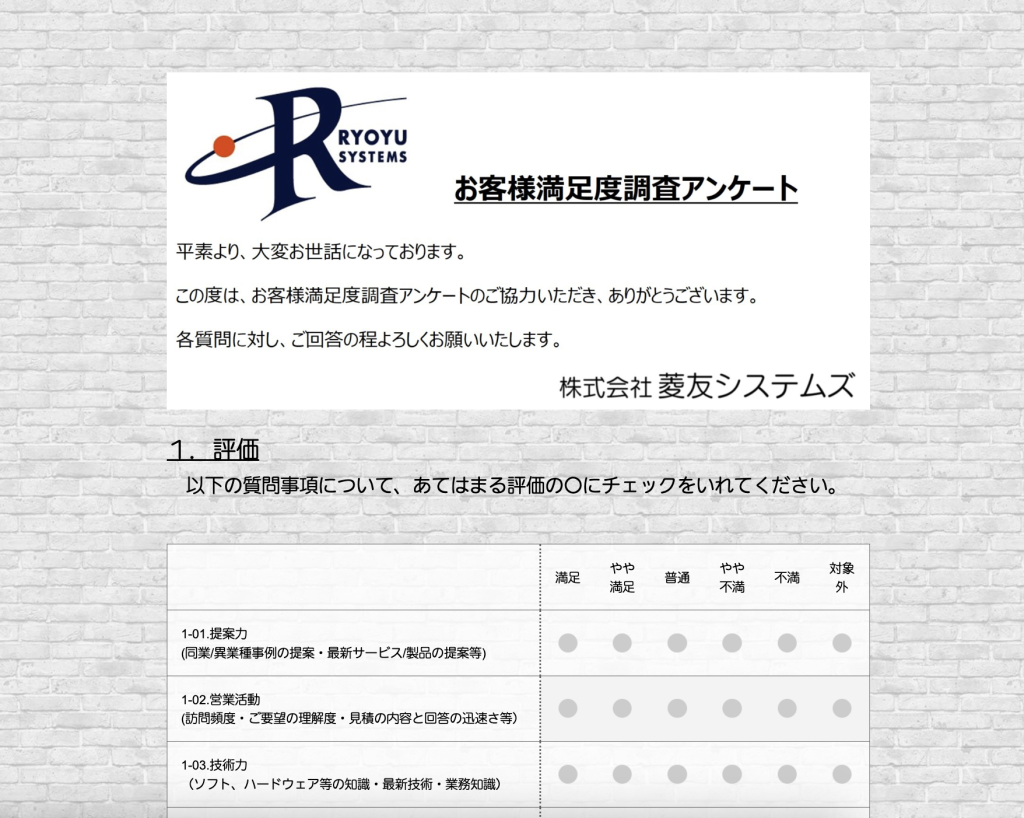 - 顧客満足度アンケートをExcelを添付したメールで行っており、営業担当にもお客様にも工数がかかっていた