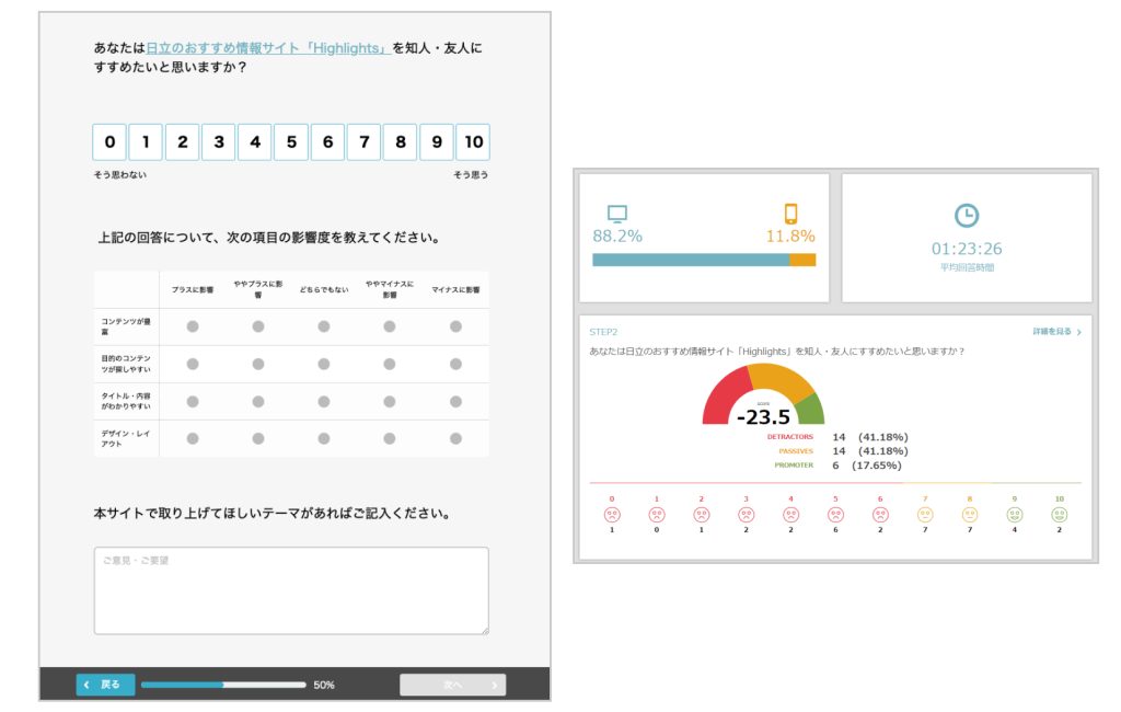 このアンケートは、暫くデジタルな動きが無い顧客をアクティブな顧客にすることを目的としてはじめましたが、近頃では日立のファンを増やすことを目的に広く情報発信なども行っております。 休眠顧客のアクティブ化について一定数の実績がありましたし、お客様が弊社に対してどう感じているのかをブランディングチームにフィードバックすることもできるようになり、複数部門に渡ってアンケート実施の効果を感じております。