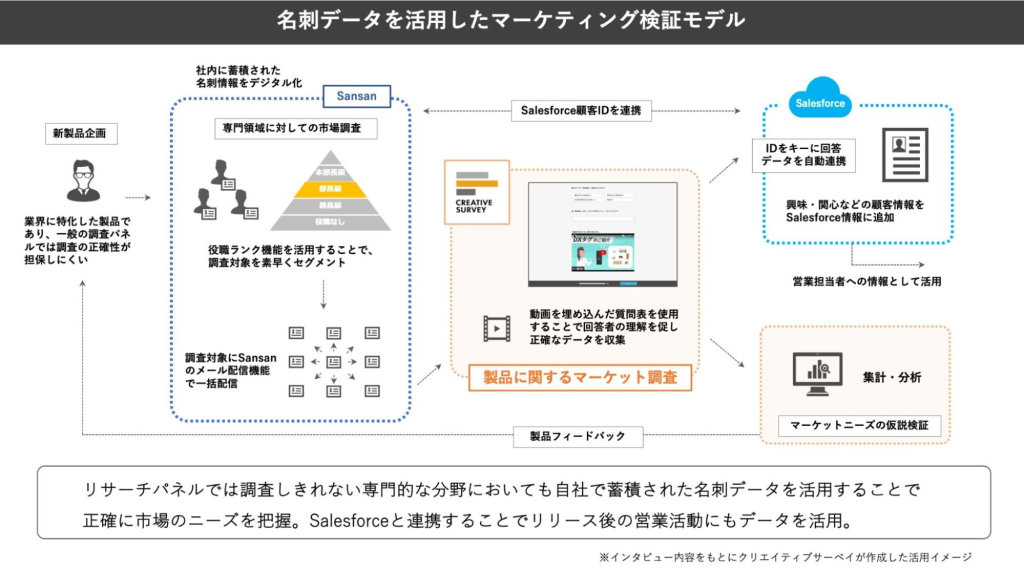 弊社では名刺管理をSansanで行っているので、Sansanとの連携が可能なツールであること、加えてSalesforceとの連携も可能なツールであることが決め手となり、CREATIVE SURVEY for Salesforceの導入に至りました。