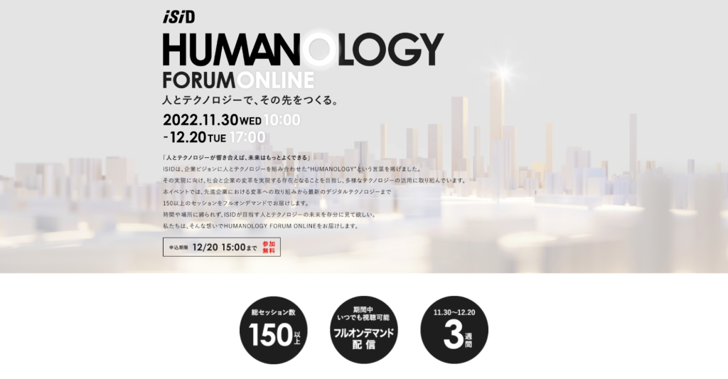 導入に踏み切るきっかけとなったのは、2022年11月から12月にかけて開催した「HUMANOLOGY FORUM ONLINE」というイベントでした。HUMANOLOGYは弊社の造語です。「人とテクノロジーが響きあえば、未来はもっと良くできる」ことをビジョンとして掲げています。