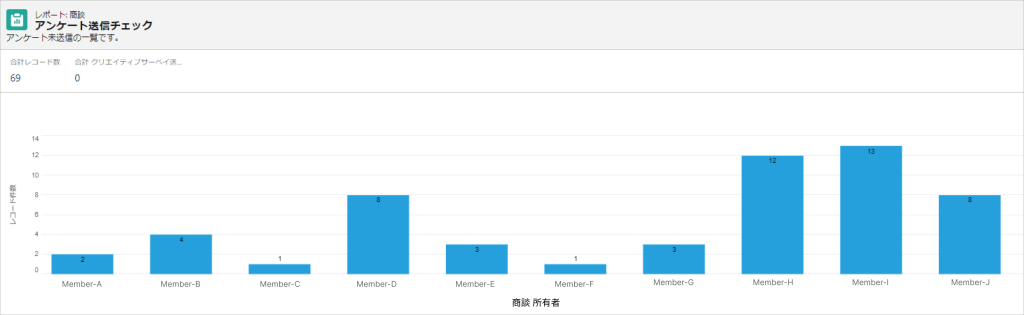 しかし一部でアンケートの送付漏れなどが発生してしまうので、送付していない商談のリストをSalesforce上で抽出できるように設定し、送っていない場合にはアラートを出して担当者に送付を促す仕組みを整えています。