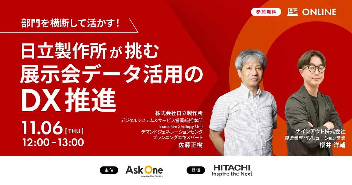 本セミナーでは、こうした課題を乗り越えてきた日立製作所様をゲストにお迎えし、展示会で得た情報をどのようにデータ化し、部門横断で共有・活用する仕組みを構築したのかをご紹介します。