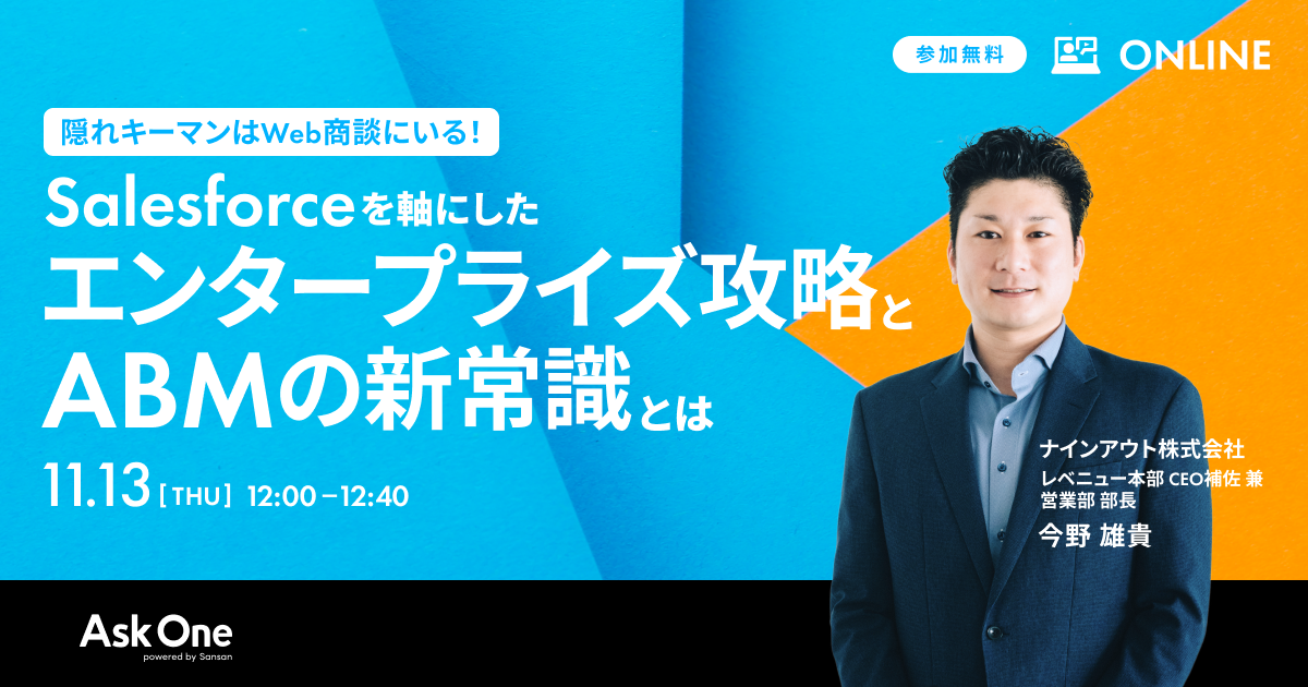 エンタープライズ企業への営業活動やABMを強化していきたい方に向けた内容です。次の一歩を考えるきっかけとして、ぜひご参加ください。