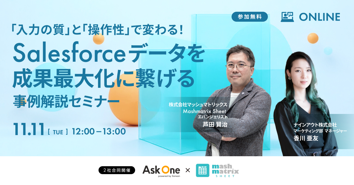 共催セミナー|「入力の質」と「操作性」で変わる!Salesforceデータを成果最大化に繋げる事例解説セミナー