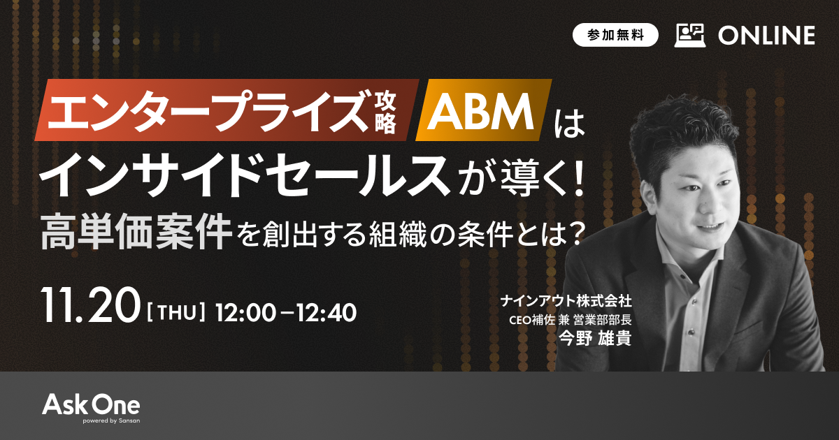 事例セミナー|エンタープライズ攻略・ABMはインサイドセールスが導く!高単価案件を創出する組織の条件とは?