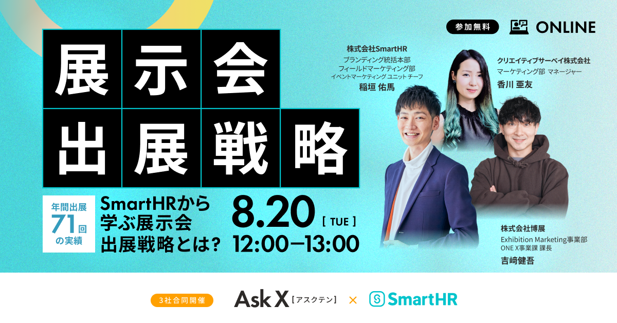 共催セミナー|Ask X ×Smart HR~ 年間出展回数71回の実績を持つSmartHRから学ぶ、展示会出展戦略とは?~