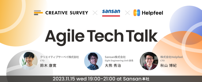 Agile Tech Talkはクリエイティブサーベイ株式会社と株式会社Helpfeelが主催する技術勉強会です!