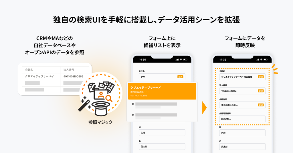 「顧客の声を機会に変える」をミッションに、あらゆる顧客接点で営業機会を逃さないマルチチャネルフォーム「Ask One」を提供するクリエイティブサーベイ株式会社(以下クリエイティブサーベイ)は、企業のデータ資産をその場で活用する「参照マジック」が大幅アップデートし、多様なデータベースから必要な情報を直感的に検索できるインターフェースを手軽に搭載できる機能を公開したことを発表します。