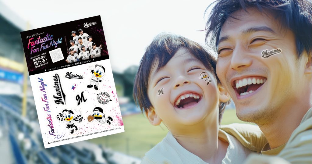 各入場ゲートにて先着2万名様に、当日限定のマリーンズフェイスシールをお配りします。マリーンズロゴ・マーくん・リーンちゃん・ズーちゃんなどマリーンズのキャラクターを身に纏って、皆で一緒に応援を盛り上げましょう!