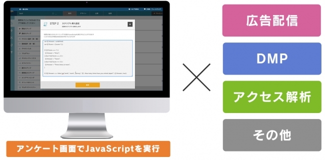 サブドメインに対応することで、ステップごとにjavascriptを記述できるようになりました!ステップごとに記述が可能なので、分岐機能からの広告タグの設置、アンケート回答を解析ツールと紐づけることなど。よりアンケートとマーケティングに活用できる機能です。
