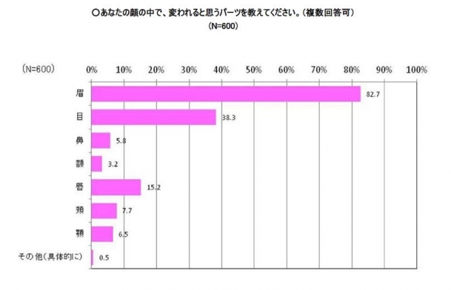 - 顔の印象を変えられると思うパーツ、第1位はまゆ!
