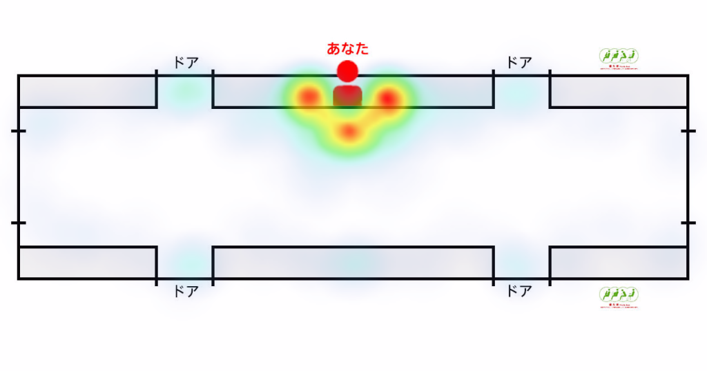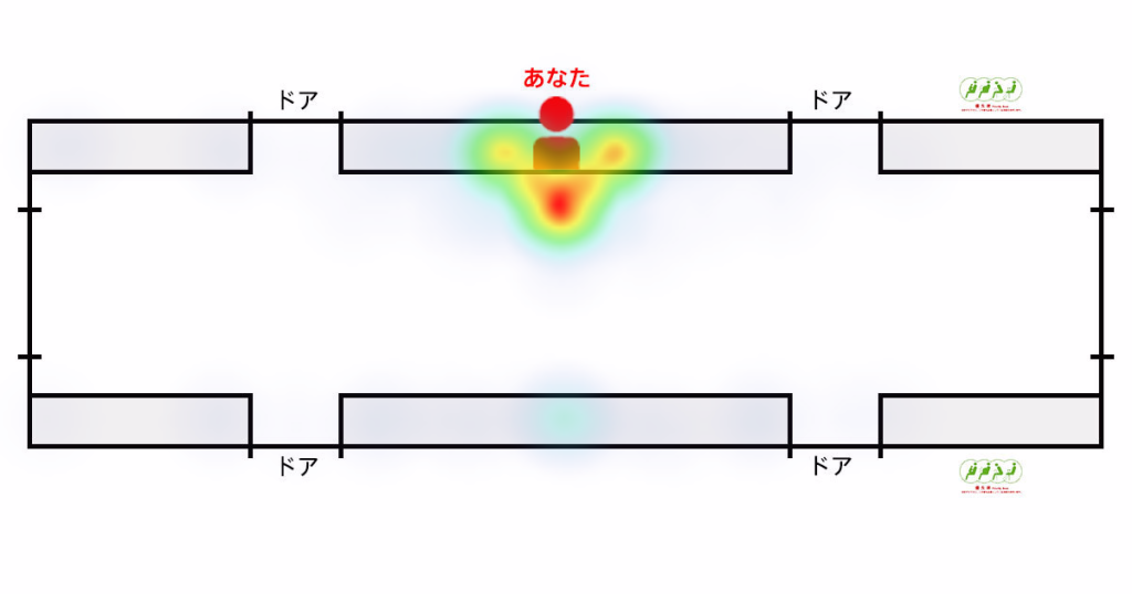 2017年9月に実施した「電車内のモラルに関する調査」では、クリッツポイントを活用して「電車内で他人に座ってほしくない場所(立ってほしくない場所)」を調査しました。 調査結果のアウトプットは以下の通りです。