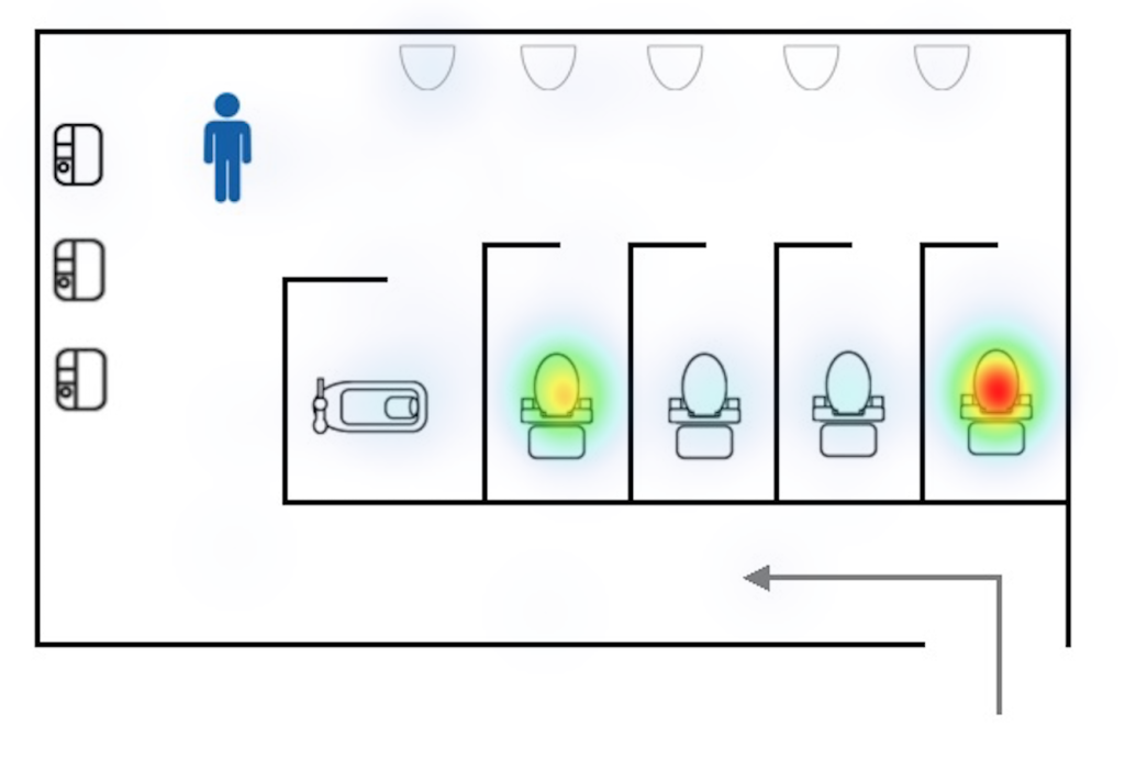 <「はじめる」ボタンをクリックすると、トイレの間取り図が表示されます。トイレの個室がすべて空いていたとき入りたい場所を1ヶ所クリックしてください。>