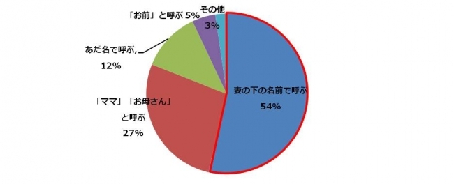 愛妻家の自宅での妻の呼び方は「妻の下の名前で呼ぶ」が一番多く54%と過半数以上であることわかりました。