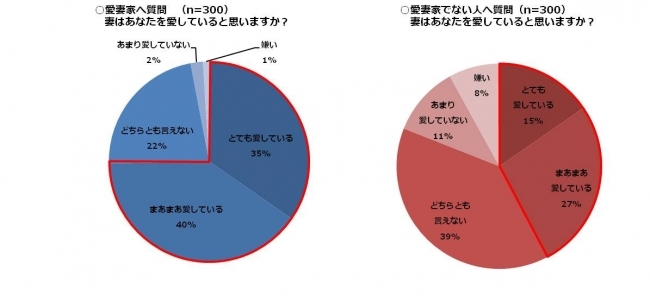 一方、愛妻家でない人は妻に愛されている実感がある人は約40%と、愛妻家との大きな差がある結果となりました。